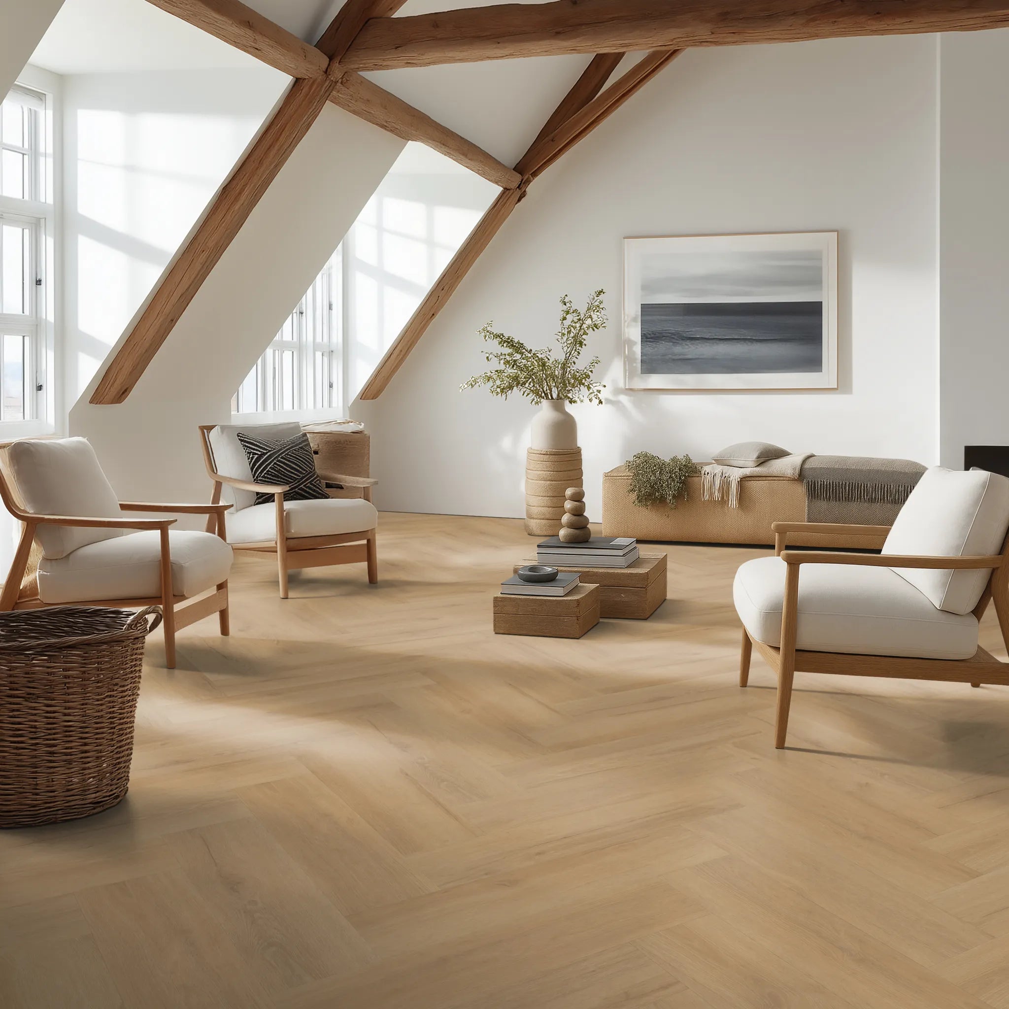 Unser Fischgrät verleiht deinem Zuhause einen besonders stilvollen, charakterstarken Look, der deine Räume optisch aufwertet. Die wechselnden Winkel betonen die Struktur des Bodens auf elegante Weise und verleihen jedem Raum Tiefe und Bewegung. Egal ob modern, klassisch oder skandinavisch eingerichtet – Fischgrät harmoniert mit vielen Einrichtungsstilen und bringt einen Hauch von Luxus in dein Zuhause.